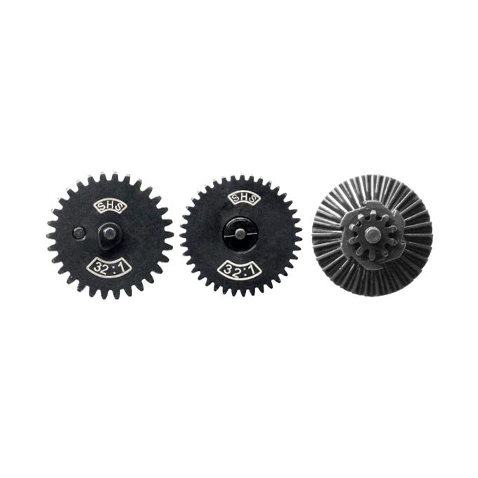 CNC set ozubených kol od ASG ULTIMATE s převodovým poměrem 24,5:1. Pro extrémně zátěžové upgrade sestavy AEG zbraní. Vyrobeno CNC obráběním z oceli pro maximální přesnost a odolnost. Dokonale tvarované zuby. Optimalizovaná tvrdost a plynulý přenos výkonu. Sada všech 3 kol (motorové, středové a pístové). Osička 3 mm.