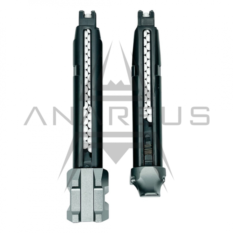 Kovový zásobník pro GBB pistole AAP-01 / AAP-01C v provedení černá. Kapacita 23 BBs. Vhodný pro středně silné plyny typu Green Gas. Určen i pro pistole G-series jako Tokyo Marui (Model 17, 18C), WE (R17, R18C) a Raven / VORSK (EU17, EU18 a další). Stabilní výkon bez ucházení. Oboustranný výřez pro záchyt závěru.