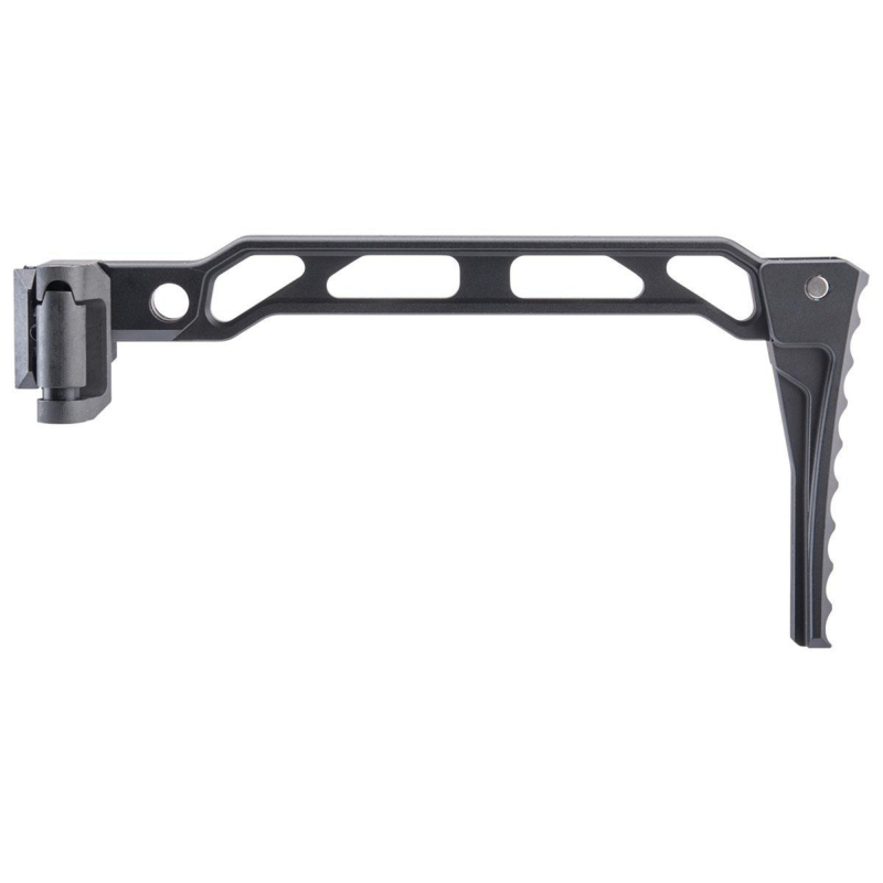 Hledáte lehkou a pevnou sklopnou pažbu, která sedne na RIS (1913) koncovku pažby a zároveň nabídne možnost sklopení na obě strany pro snadné přenášení nebo manipulaci? Potřebujete pažbu s QD úchytem pro rychlé připojení popruhu? Chcete pažbu kompatibilní s populárními platformami jako MCX, STRIBOG? Pažba AB-8R přináší funkčnost a odolnost v kompaktním a lehkém provedení. Tělo pažby je vyrobeno z lehkého, pevného hliníku se skeletovým vybráním pro snížení hmotnosti a lepší ergonomii, zatímco montážní základna je z oceli pro jisté uchycení na RIS liště (1913). Pažba nabízí plně oboustranné sklopení, takže ji lze nastavit podle potřeby pro praváky i leváky, a disponuje rychloupínacím QD okem pro upínání taktického popruhu. Díky konstrukci je montáž i demontáž jednoduchá a spolehlivá. AB-8R je kompatibilní s 5KU RIS adaptérem pro platformy jako M4, MP5 nebo AK, čímž dostává nové a neokoukané možnosti při stavbě unikátních zbraní.