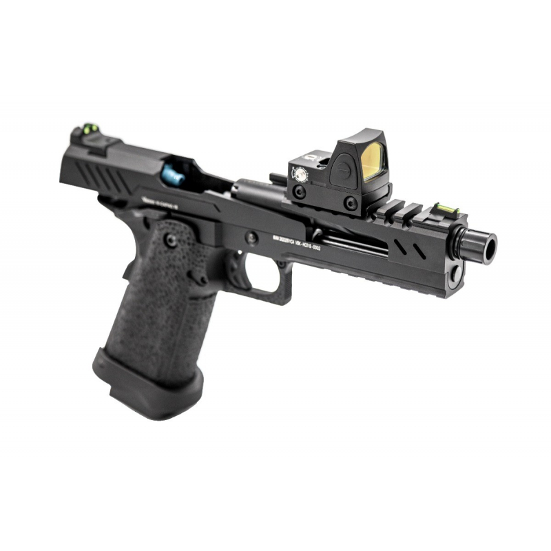 Pistole je vybavena rozšířením zásobníkové šachty pro rychlé přebití, pohodlným úchytem s hrubou texturou a spirálovitou vnější hlavní s kompenzátorem. Světlovodná mířidla a RIS lišta pro připevnění kolimátoru zvyšují efektivitu a přesnost střelby. Uvnitř zbraně najdeme zesílenou trysku, přesnou vnitřní hlaveň s průměrem 6.03 mm.