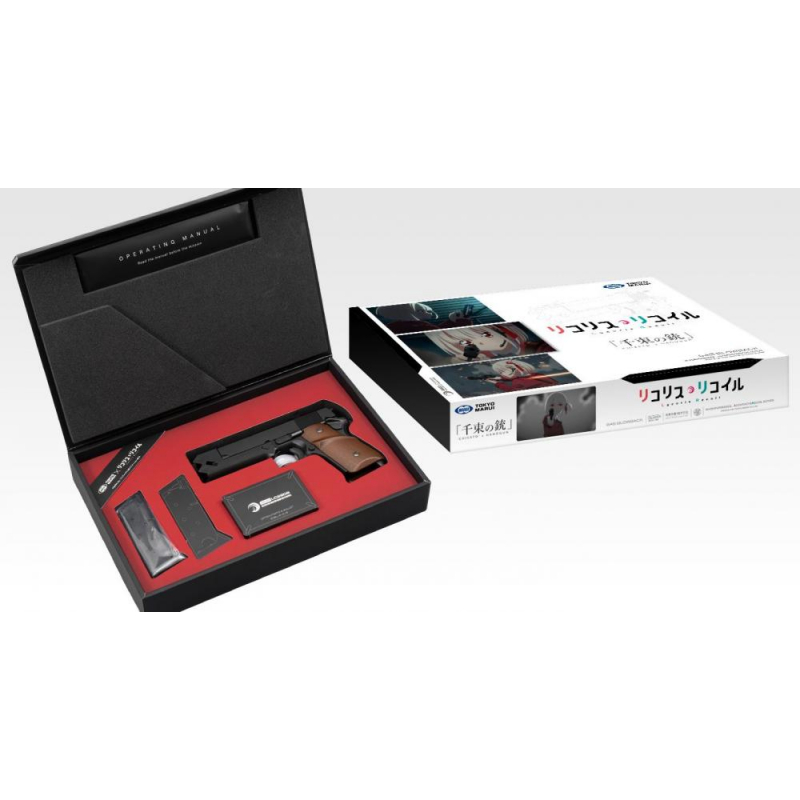TM GBB plynová pistole Chisato Nishikigi's Handgun (TM DT. 45 GBB) nabízí silný zpětný ráz, integrovaný kompenzátor, efektivní úsporu plynu, spolehlivost, funkční záchyt závěru a samozřejmě unikátní balení s motivy seriálu.