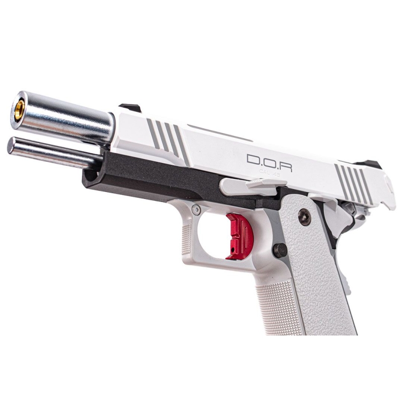Pistole je vybavena funkcí Blowback, čili při každém výstřelu realisticky "kopne" a tím i nabije další kuličku do komory. Chod a rozborka zbraně jsou vymyšleny tak, aby co nejvíce připomínaly reálnou zbraň. V tomto případě model 1911, respektive její mladší sestru 2011. Zbraně řady 2011 jsou speciálně navrženy pro sportovní střelbu IPSC a tudíž od nich můžeme očekávat skvělou ergonomii a ovládání.