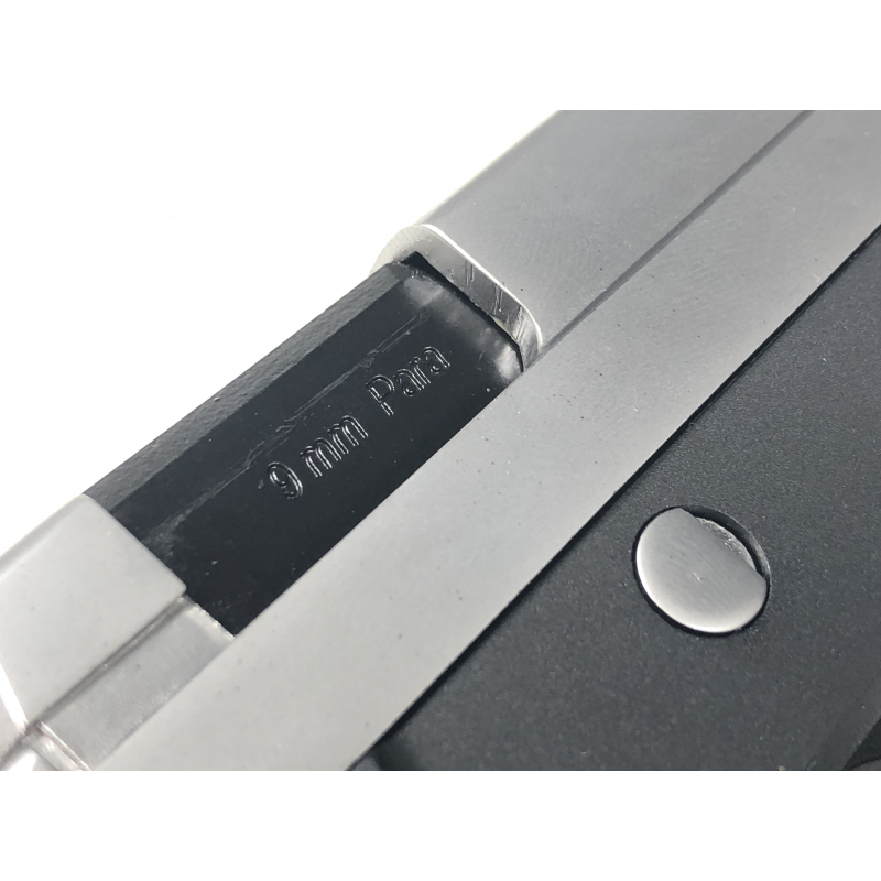 Pistole nabízí silný zpětný ráz (blowback), kovový niklovaný závěr.