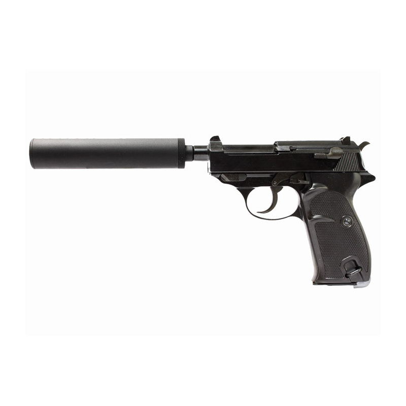 WE GBB plynová pistole Walther P38K (P010S) v krátkém provedení s tlumičem.