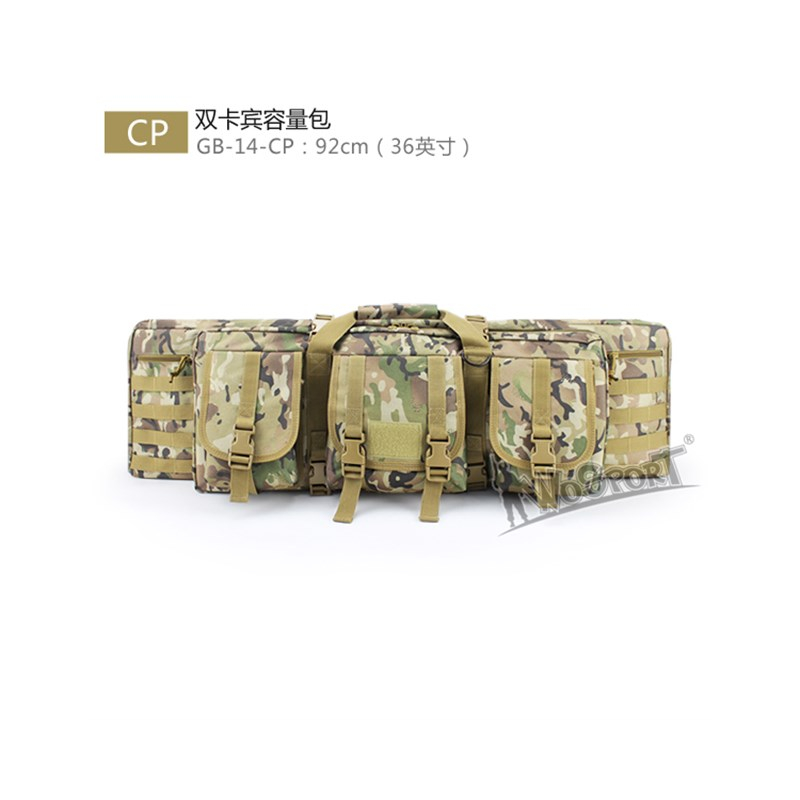 Odolná a praktická brašna, která pojme dvě primární zbraně na airsoft a spoustu dalšího vybavení. Zipy mají očka pro uzamknutí, popruhy jsou kvalitní a bytelné. Na přední straně se nachází tři kapsy s velkým úložným prostorem. Na největší kapse najdeme Velcro panel pro umístění nášivky.