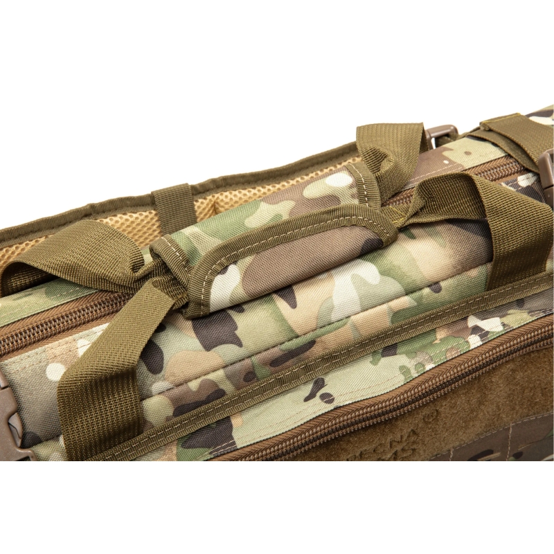 Specna Arms transportní brašna URBAN WAR ve vzoru Multicam (replika) je odolná brašna pro bezpečný přenos ostrých i airsoftových zbraní do 87 cm. Nabízí prostor pro 2 delší zbraně, praktické kapsy na příslušenství a možnost nošení jako batoh. Je vyrobena z Cordury 1000D a odolného nylonu s polstrováním proti poškození zbraní při přepravě. Na brašně je MOLLE vazba i VELCRO panel.