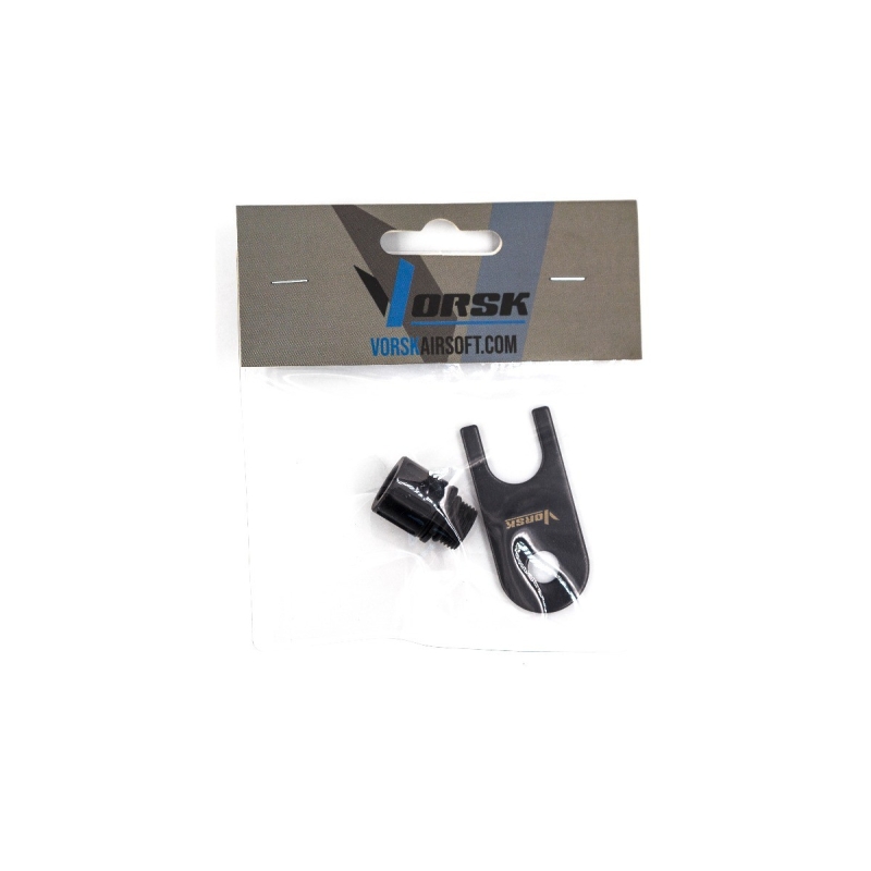 Adaptér VORSK 12+ mm CW na 14- mm CCW je nezbytným doplňkem pro majitele airsoftových pistolí VORSK nebo Raven, kteří chtějí rozšířit možnosti své zbraně o tlumiče nebo nasvětlovací Tracer jednotky. Díky tomuto adaptéru lze snadno přeměnit vnitřní pravotočivý 12mm CW závit na standardní levotočivý 14mm CCW. Adaptér je vyroben z kvalitního kovu, což zajišťuje jeho pevnost a dlouhou životnost. Instalace je snadná a hlavně pevná díky přiloženému klíči. Součástí je i šroubovací krytka vnějšího závitu 14- mm CCW, která chrání závit před nečistotami, když není na pistoli instalovaný tlumič.