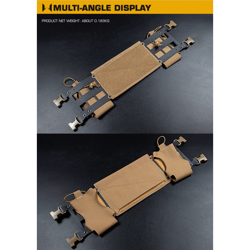 S úzkým profilem a robustní MOLLE vazbou na přední straně panel umožňuje snadné připevnění dalších doplňků a vybavení přímo na boky vašeho chest rigu.