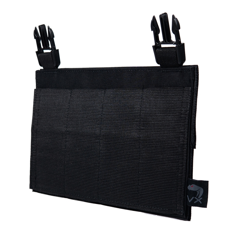 Modulární přední panel typu Flap určený pro nosiče plátů Viper VX Buckle-Up, který je ideální pro uživatele, kteří chtějí mít možnost rychle měnit konfiguraci své výstroje podle aktuální zbraně nebo typu operace. Tento panel má pevně přišité elastické sumky pro 4 zásobníky typově vhodné pro samopaly jako MP5, CZ Scorpion EVO 3, ARP9, GP Stribog a další podobné modely. Panel lze snadno připojit pomocí FASTEX spon a suchého zipu VELCRO, a to nejen na produkty značky Viper, ale i na jiné kompatibilní nosiče s odpovídající roztečí spon. Celá konstrukce je vyrobena z odolného materiálu 700D Polytech, který snese tvrdé zacházení i náročné terénní podmínky.