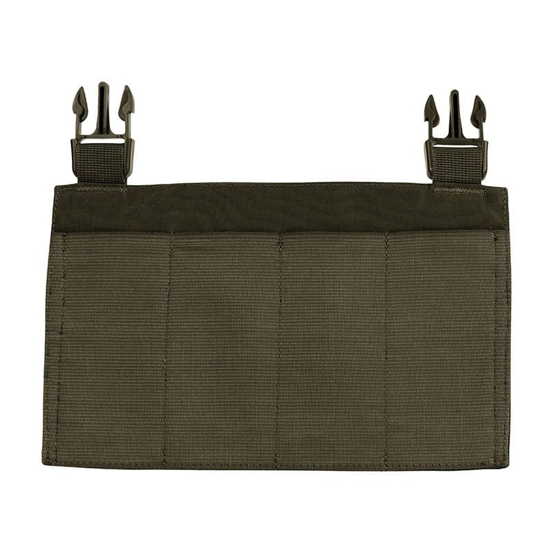 Modulární přední panel typu Flap určený pro nosiče plátů Viper VX Buckle-Up, který je ideální pro uživatele, kteří chtějí mít možnost rychle měnit konfiguraci své výstroje podle aktuální zbraně nebo typu operace. Tento panel má pevně přišité elastické sumky pro 4 zásobníky typově vhodné pro samopaly jako MP5, CZ Scorpion EVO 3, ARP9, GP Stribog a další podobné modely. Panel lze snadno připojit pomocí FASTEX spon a suchého zipu VELCRO, a to nejen na produkty značky Viper, ale i na jiné kompatibilní nosiče s odpovídající roztečí spon. Celá konstrukce je vyrobena z odolného materiálu 700D Polytech, který snese tvrdé zacházení i náročné terénní podmínky.