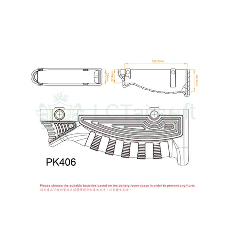 Přední zvětšená rukojeť v novém designu od LCT se připevňuje na RIS lištu a slouží také jako úložný prostor pro baterii!