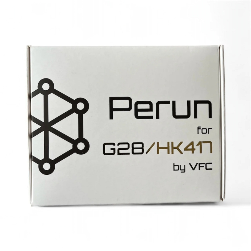 PERUN V2.2 ETU Unit G28 je pokročilá upgrade procesorová jednotka s MOSFETem pro DMR pušky VFC G28 a HK417. Nahrazuje původní mechanický spoušťový blok vlastním tělem s integrovaným nastavitelným odporem spouště Clicker a elektronikou PERUN. Přináší magnetickou detekci spouště, optickou kontrolu přepínače a pístového kola a plně programovatelné režimy střelby.