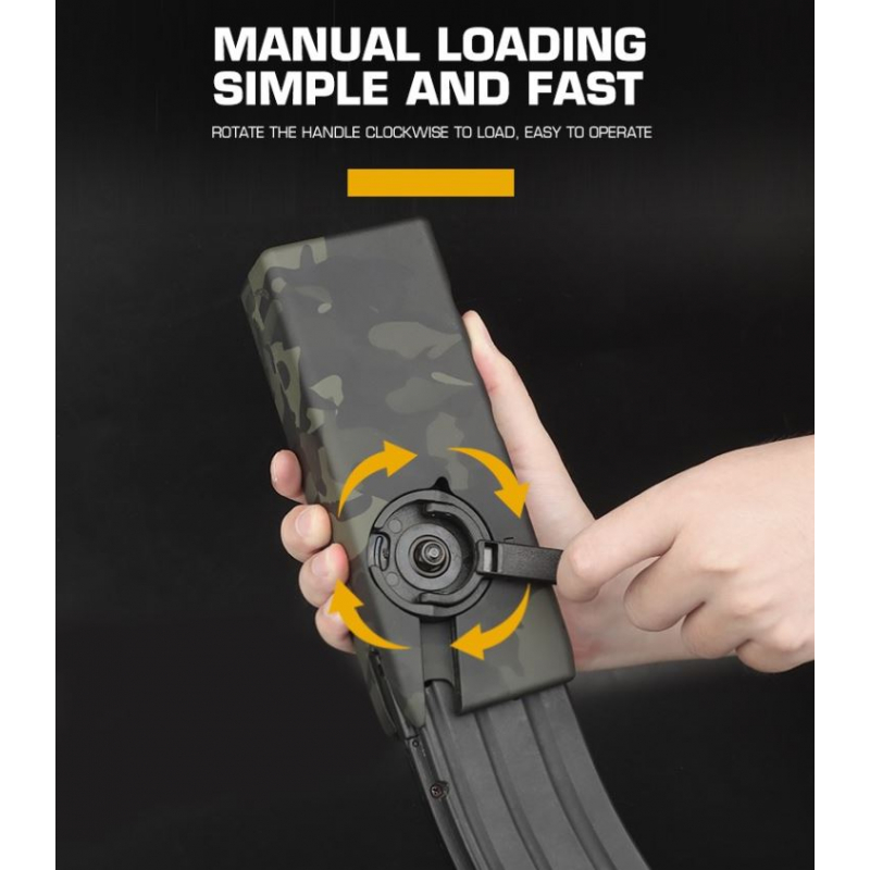 Rychloládovačka Lever Silence od firmy WoSport je nezbytnou součástí výbavy každého hráče airsoftu. Rychlým otáčením klikou lze téměř každý tlačný zásobník M4/16 velmi rychle naplnit.