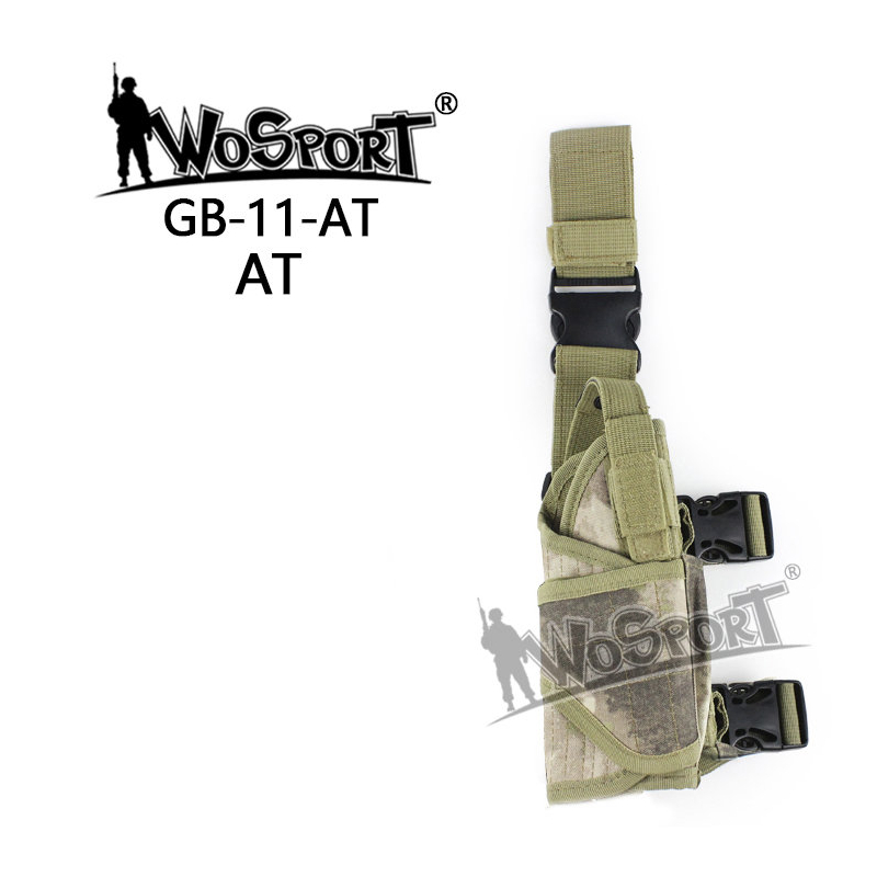 Univerzální taktické stehenní pistolové pouzdro TORNADO od WoSporT v provedení A-Tacs AU (replika).