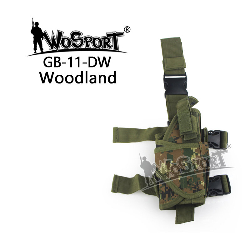 Univerzální taktické stehenní pistolové pouzdro TORNADO od WoSporT v provedení Digital Woodland.