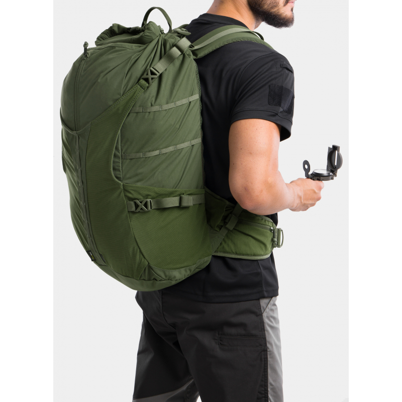 Ramenní popruhy batohu jsou polstrované a pokryté 3D síťovinou, což zajišťuje vysoký komfort při nošení. Pohodlný bederní pás je lehce polstrovaný a vybavený dvěma kapsami na malou elektroniku či doklady. Boky batohu jsou vybaveny MOLLE/PALS vazbou, která umožňuje rozšíření kapacity batohu o další kapsy, sumky a vybavení.
