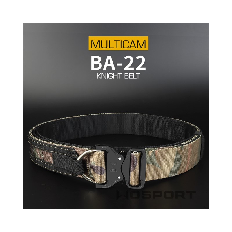 BA22 Knight belt je taktický opasek pro pistole a sumky na zásobníky či podobně. Tento opasek je vyroben z kamuflážního materiálu s nylonovou vazbou s černým lemem který poskytuje střelci tužší platformu a z vnitřního opasku se suchým zipem. Tím lépe sedí na těle a je pohodlnější během používání.