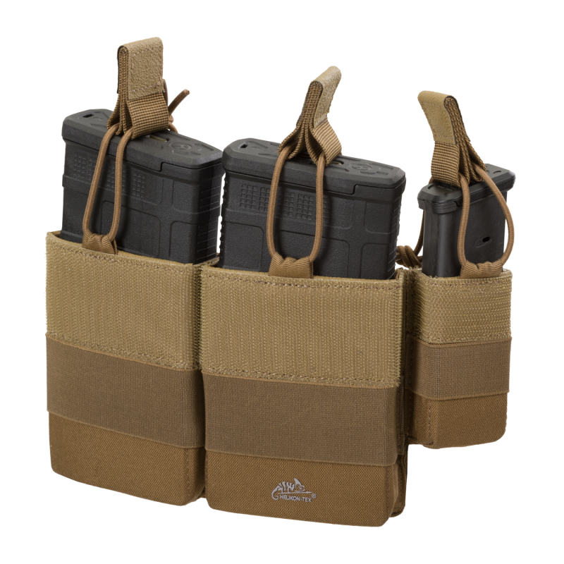 Sumka je určená pro 2 puškové zásobníky (AR15 / M4, AK, SA58 apod.) a 1 pistolový zásobník (Glock, CZ, Hi-Capa, Beretta, Sig apod.).