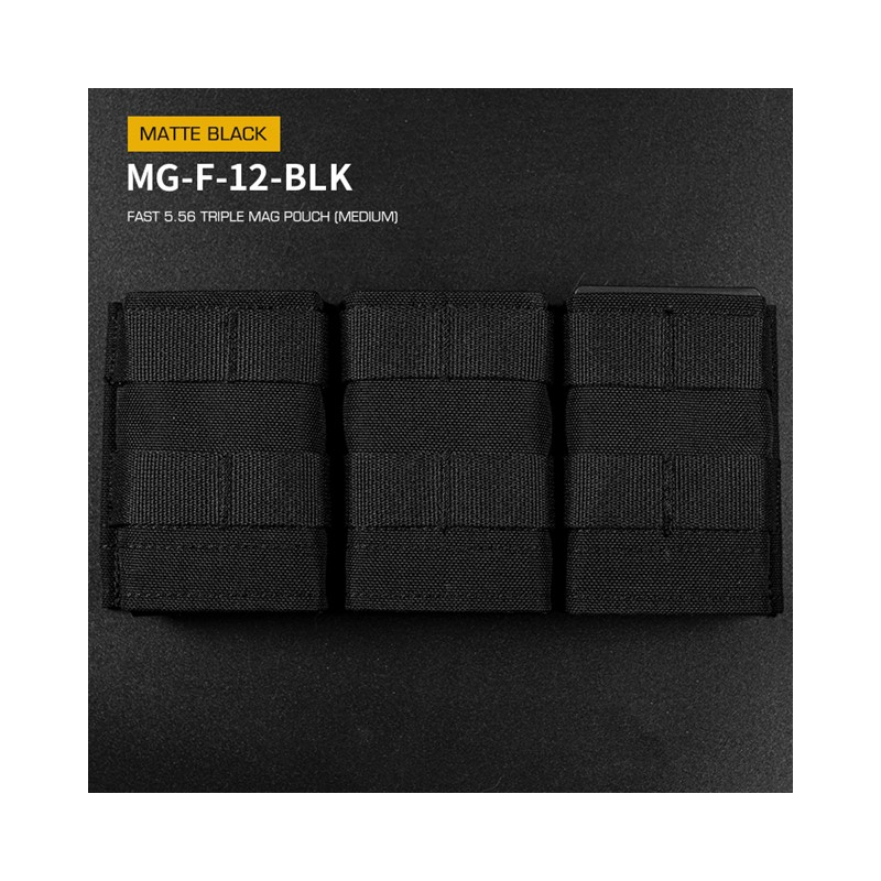 WoSporT otevřená MOLLE sumka FAST na 3 puškové zásobníky 5.56 (M4) v černém provedení je open-top pouzdro s pevnou retencí bez nutnosti bungee šňůry. Lehká konstrukce, plastové vložky a odnímatelné MOLLE klipy z ní dělají ideální sumku pro rychlé přebíjení. Určena pro 3 puškové zásobníky 5.56 jako M4, M16, HK416, MK18, TAVOR, SCAR-L (MK16) a jejich airsoftové repliky.