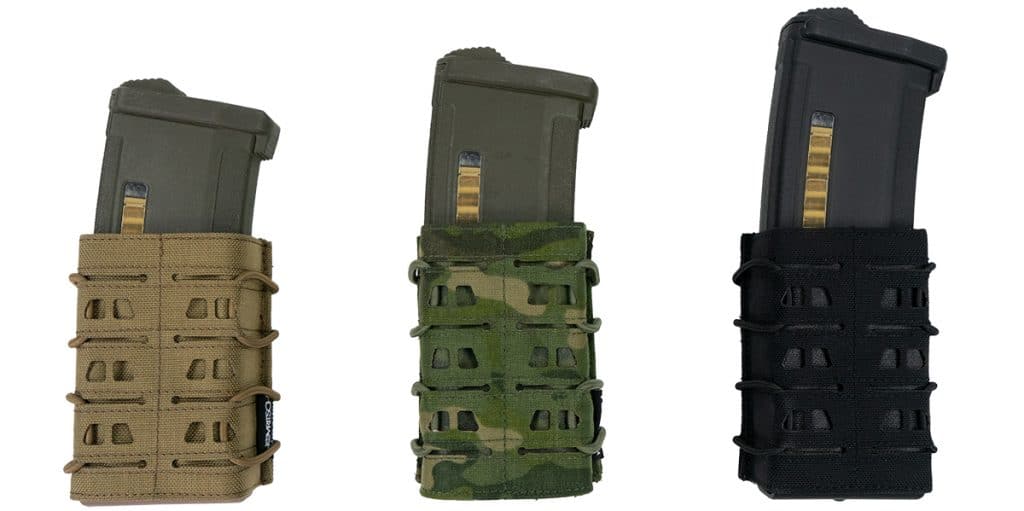Hledáte spolehlivou a univerzální MOLLE sumku pro M4 zásobníky? Potřebujete, aby zásobníky držely v sumce pevně a přitom byly rychle dostupné? Tato elastická sumka od Novritsch je přesně to, co hledáte. Sumka na puškový zásobník AR15 (STANAG i PMAG) pojme 1 zásobník ráže 5.56. Je kompatibilní s modely jako SSR4, M4, MK18, M16, HK416 a také s Tavor či SCAR-L. Díky designu s Laser-Cut MOLLE vazbou ji můžete vrstvit na další sumky, což je ideální pro všechny, kteří potřebují efektivně uspořádat svou výstroj. Guma po stranách sumky zajišťuje pevný svor zásobníku. Vnitřní plastové pouzdro udržuje sumku rozevřenou, i když je prázdná, což výrazně urychluje přebíjení. Sumka je vyrobená z odolného nylonu 1000D, takže bez obav zvládne i drsné podmínky každého bojiště. Zajímavou inovací je možnost vložit na dno sumky nízkou nebo vysokou vložku, a tím si upravit výšku zásobníku v sumce pro intuitivní přebíjení. Při použití vysoké vložky můžete v sumce přenášet i krátké zásobníky typu 20rds VN nebo krátké PMAG zásobníky. Vložka se na dno zásobníku připevní šroubem, takže se nemusíte bát, že ji v akci ztratíte.