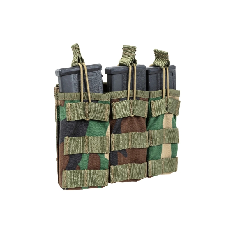 Otevřená MOLLE sumka na 3 zásobníky M4 / AR15 od SATAC v provedení Woodland.