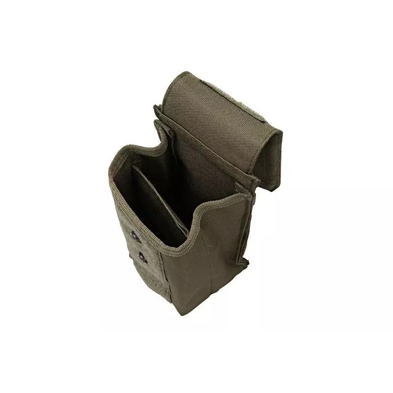 Sumka z nylonového vlákna. Držák je kompatibilní s PALS nosného systému MOLLE. Pojme 2 zásobníky AK a je vybaveno další, vnitřní přihrádkou. Rozměry - 160 x 70 x 65 mm. Chlopně jsou opatřeny popruhy typu hook&loop a uzávěry na zip.