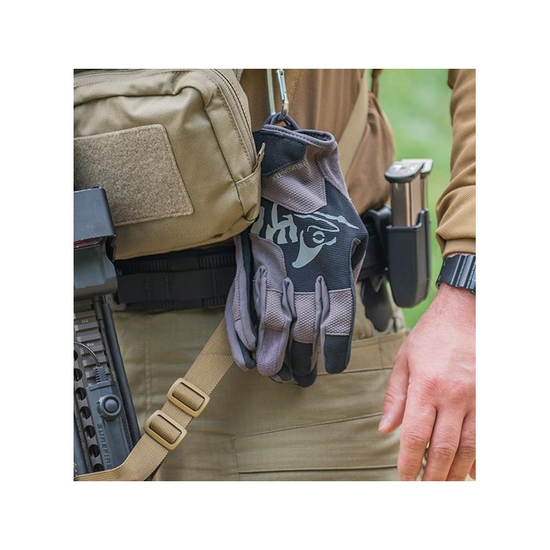 Rukavice jdou zavěsit na vybavení díky paracord smyčce. Špička prostředníčku je opatřena látkou, která je plně kompatibilní s dotykovými displeji.