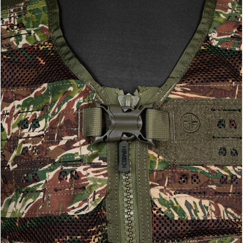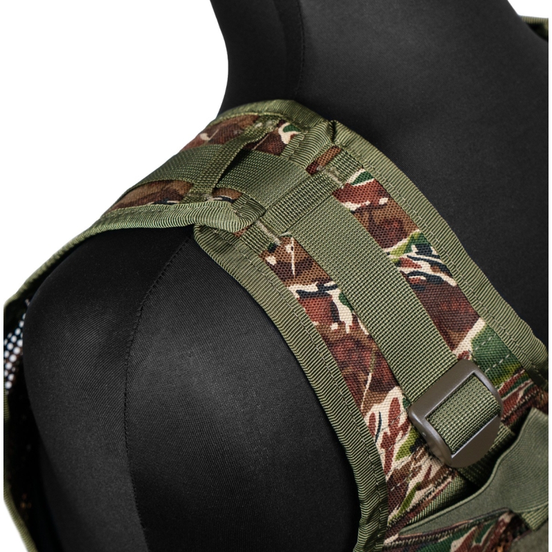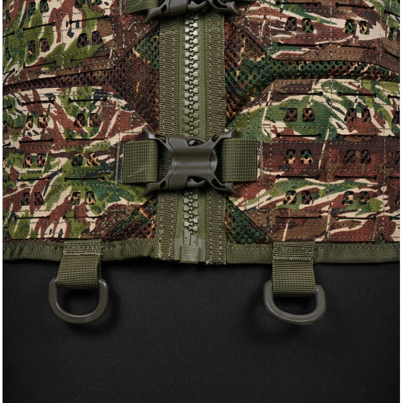 Hledáte lehkou vestu na airsoft, pod kterou nebudete jako slaneček ve vlastní šťávě a zároveň budete moci mít po ruce MOLLE sumky a pít z vaku na vodu? Díky prodyšné síťované tkanině perfektně odvětrává přebytečné teplo při intenzivním nasazení. Rozsáhlé laserem řezané (Laser-Cut) MOLLE panely vám umožní nakonfigurovat výstroj přesně podle vašich potřeb. Vesta má vnitřní kapsu na drobnosti nebo důležité vybavení, která je snadno přístupná díky zipu, takže mobil nebo klíče zůstanou bezpečně na místě. Zadní panel je připraven na vložení hydratačního vaku (není součástí balení) a má zesílené prošití v oblasti otvoru pro hadici, který si můžete bez obav sami vytvořit prostřižením síťoviny (viz video). Díky odnímatelným přezkám se vesta snadno přizpůsobí a univerzální velikost (S-XL) padne většině hráčů. K dokoupení samostatně jsou i adaptéry pro rozšíření velikosti až na 4XL. Taktická vesta nemá kapsy pro balistické pláty (na rozdíl od nosiče plátů), je ale daleko lehčí a pohodlnější.