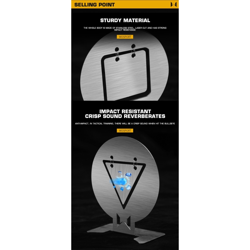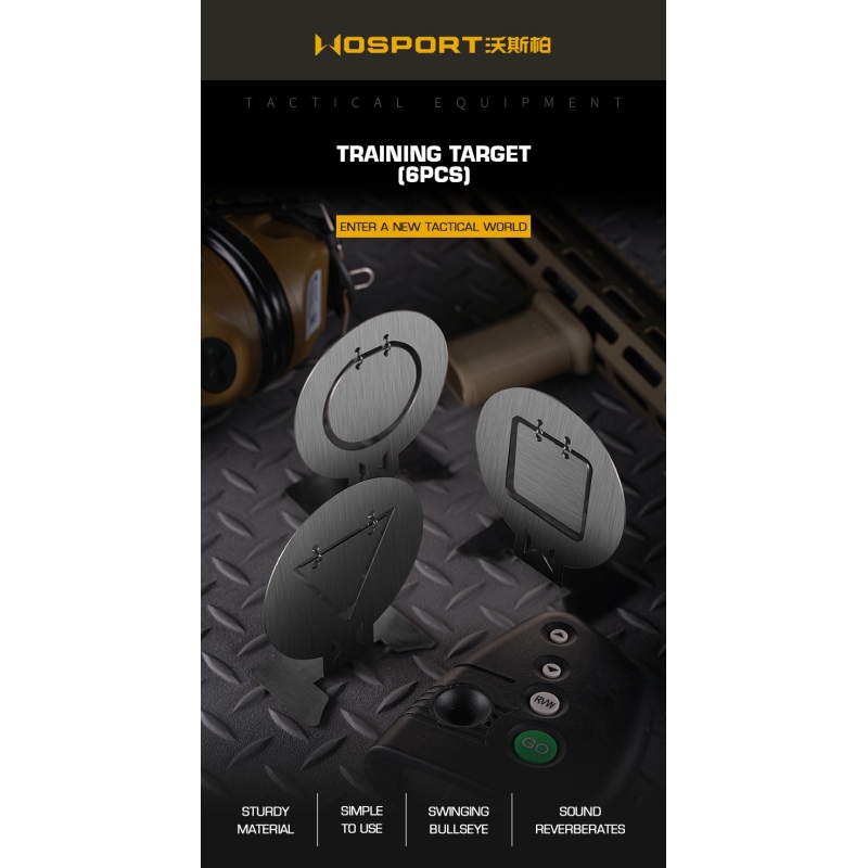 Set 6 kusů ocelových terčů 10 x 9 cm od WoSporT, které jsou určeny pro nácvik střelby z airsoftových zbraní. S touto sadou získáte 6 kusů terčů vyrobených z odolné oceli, které jsou navrženy tak, aby vydržely intenzivní používání. Díky ocelovým podstavcům mají terče stabilní základnu a můžete je snadno umístit na různé povrchy.