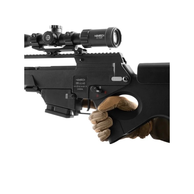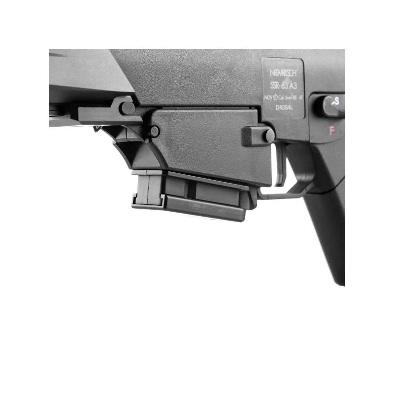 SSR63 A3 airsoftová DMR puška od Novritsch v provedení černá. Replika odstřelovací pušky SIG SL9. Střílí pouze jednotlivě (DMR). Výkon 120 m/s. CNC hliníkové vnitřní díly. Programovatelná ETU jednotka. TDC CNC hop-up komora s Maple Leaf Flat-Hop gumičkou. Plochá spoušť a krátký chod. CNC M-LOK předpažbí a dlouhá horní RIS lišta pro velké puškohledy.