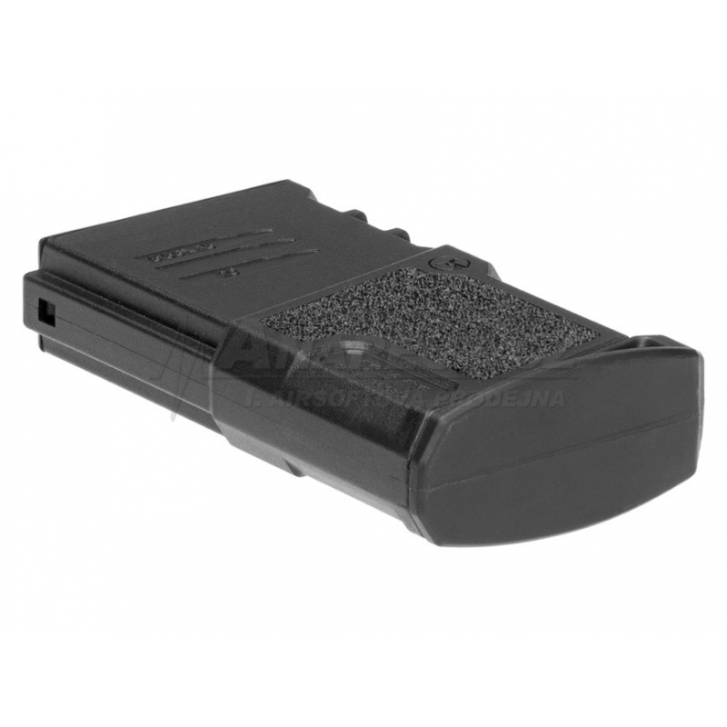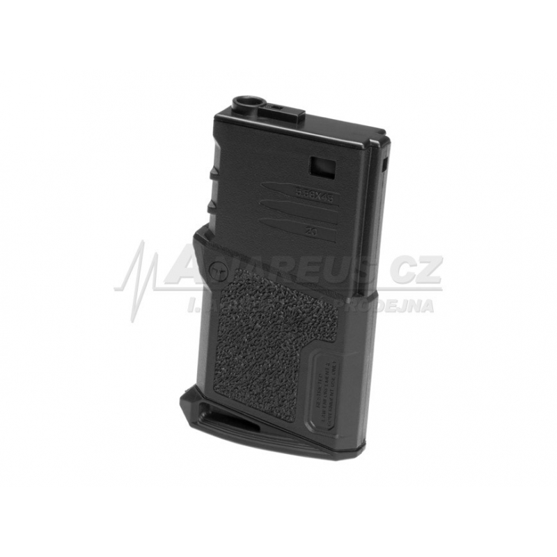 Inovativní zásobník firmy Ares z řady AMOEBA, zdrsnění povrchu proti vyklouznutí a drážky známe u zásobníků například magpul. Velmi přesné zpracování, navíc integrovaný rychlovytahovací pásek. Rozborka zásobníku přes velký imbus ve spodní části zajišťuje snadnou udržbu a čištění.