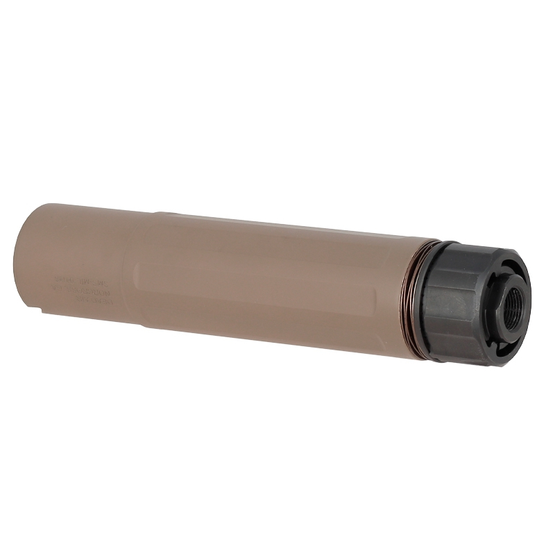Tělo tlumiče je vyrobeno z odolného hliníku 6061-T6 s realistickým hlubokým ražením a matnou povrchovou úpravou, zatímco drobné díly zamykacího mechanismu jsou z oceli pro zvýšení odolnosti. Součástí balení je také tlumič výšlehu s QPQ povrchovou úpravou. Ten se instaluje na zbraň pomocí 14mm levotočivého závitu (CCW). Následně se na něj připevňuje i samotný tlumič hluku, a to jednoduše pomocí rychlo-upínacího systému (QD). Stačí nasadit tlumič do vodících drážek a následně otočit základnu tlumiče. Tento tlumič tak kombinuje realistický design s vysokou funkčností.