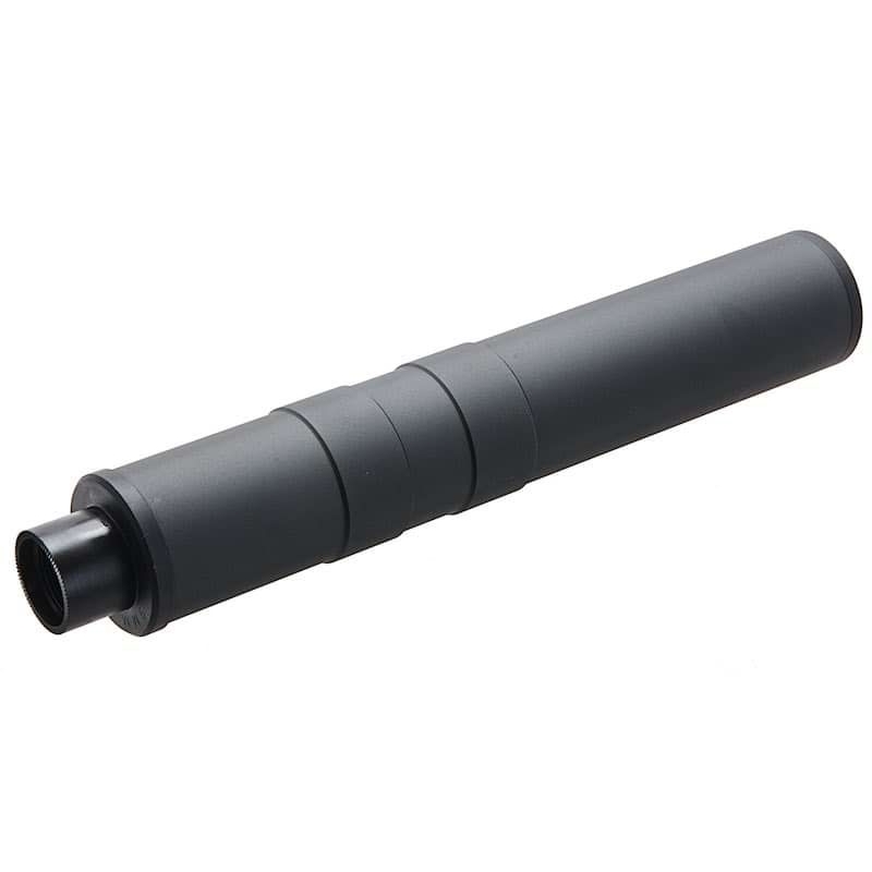Tento tlumič je inspirován skutečnou ocelovou verzí a je opravdu robustní! Naštěstí není tak těžký. Je vyroben z kombinace oceli a hliníku. Navíc díky délce 295 mm umožňuje uschování přesahující vnitřní hlavně o délce 450mm až 467mm, což může lehce zvýšit vaši úsťovou rychlost (FPS).
