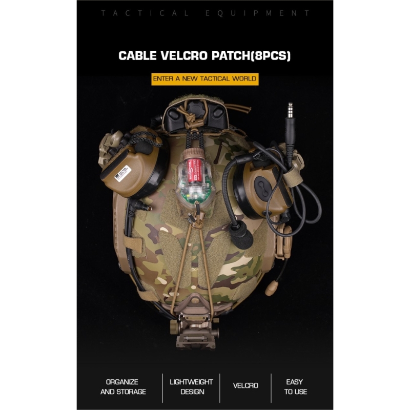 WoSporT VELCRO PATCH organizér na kabely v balení 8 kusů v černém provedení pomůže udržet kabely headsetu, PTT, NVG i powerbanky přehledně na místě. Díky suchému zipu je použití rychlé a jednoduché. Pevná fixace na VELCRO panel zabrání zamotání kabelů do výstroje nebo zbraně. Délka patche je 44 × 22 mm.