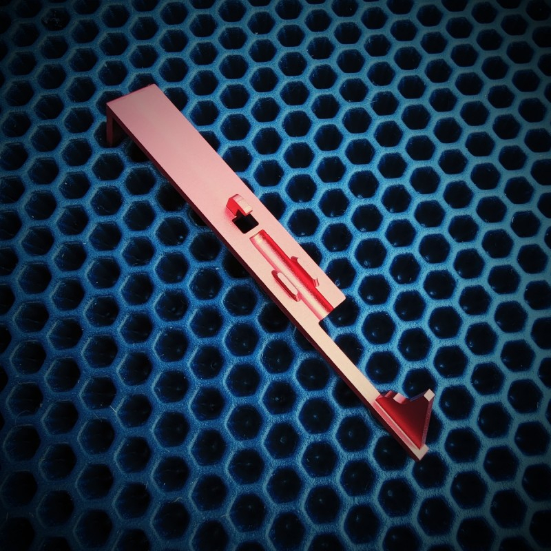 Hliníkové ramínko podavače pro mechaboxy V3 vyráběné na CNC strojích. Ultimátní díl pro kulomety a nebo silné upgrady.