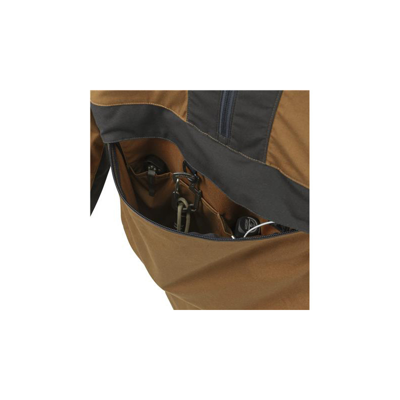 Kapuce bundy je velikostně upravitelná pomocí elastické šňůrky s brzdičkou. Stejným způsobem si můžete velikostně nastavit i spodní lem bundy. Boky bundy se dají až k podpaží rozepnout pomocí zipů, snadno tak můžete odvětrávat přebytečné teplo nebo se dostat ke služební zbrani na opasku.