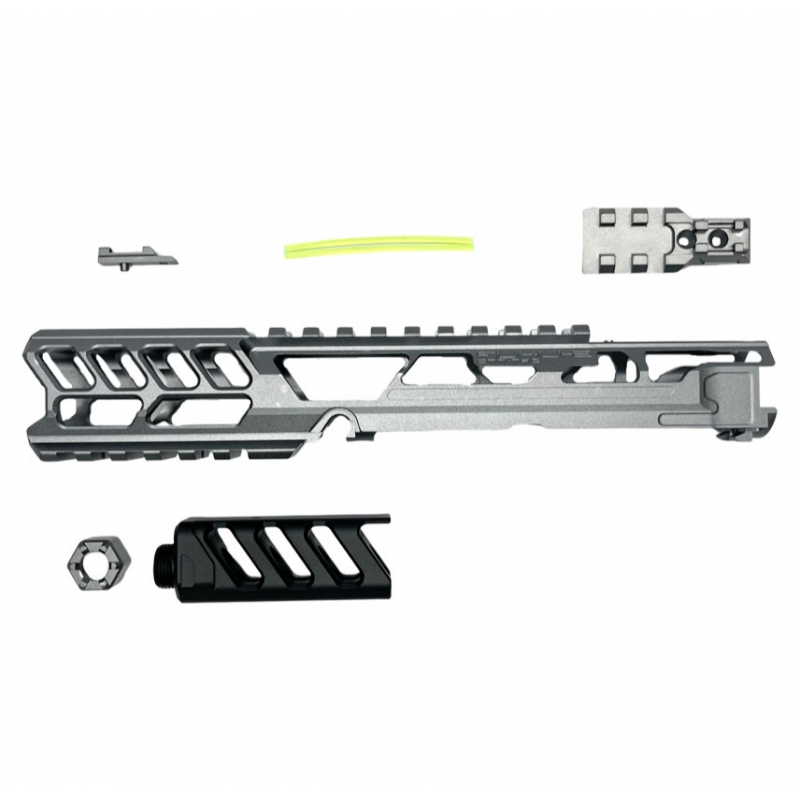 Hledáte odlehčený závěr s agresivním vzhledem, který dá vaší pistoli AAP-01 úplně nový charakter? Chcete lepší a rychlejší manipulaci s pistolí díky nižší hmotnosti a zároveň odolnost CNC obráběného hliníku 6061? Potřebujete horní díl těla, který je připravený na montáž zaměřovače, svítilny i nasvětlovacího tlumiče? Pak je tu FUKU-2 Upper Set V2 – dlouhá CUTOUT verze, ještě o 20 gramů lehčí než verze GENERAL, s agresivně vyfrézovanými odlehčovacími otvory a špičkovým zpracováním. Tento horní díl těla je vybaven dlouhou horní RIS lištou pro kolimátor, krátkou spodní RIS lištou pro grip či svítilnu, standardním 14mm CCW závitem s CNC krytkou a kompletní sadou světlovodných mířidel. Celková hmotnost pouhých 175,6 g přidává dynamiku a rychlost, aniž by utrpěla pevnost sestavy. Pokud chcete z AAP-01 udělat skutečně výjimečnou zbraň, FUKU-2 Upper Set V2 je volba, která dává smysl. Pokud chcete ale ze své AAP pistole udělat skutečný unikát, doplňte tento set o další vnější díly od CTM, které naleznete v naší nabídce. A co je krásné na pohled, mělo by být vymazlené i uvnitř, a jelikož jsme kamarádi s výhodami, máme pro vás samozřejmě i ty nejlepší vnitřní upgrade díly pro AAP-01. Teď už je to jen na vaší fantazii.