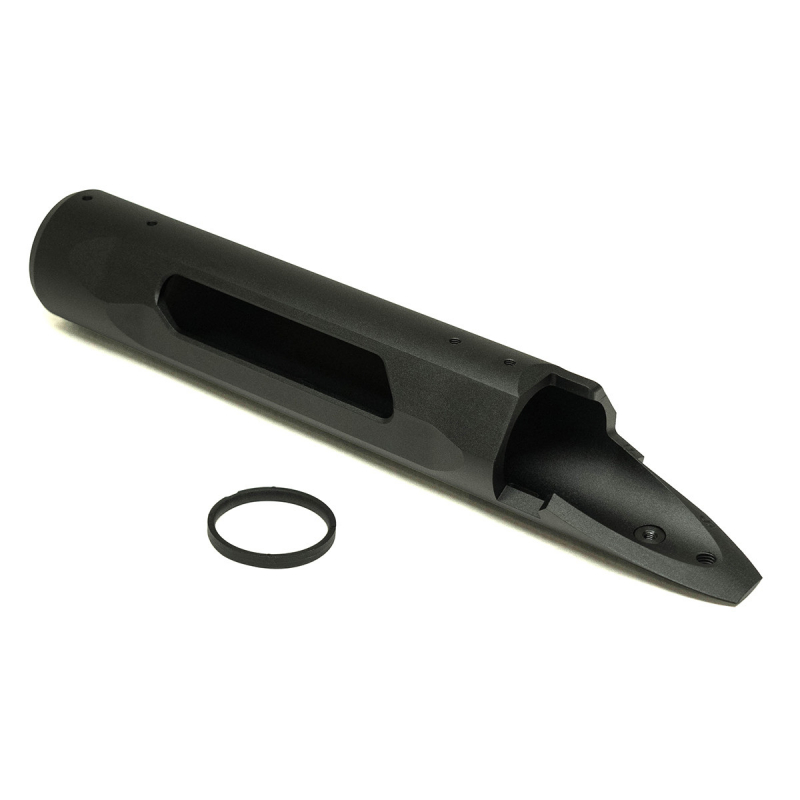 Frézované jednodílné tělo pouzdra závěru z hliníkové slitiny poskytuje mimořádnou tuhost, odolnost a precizní vedení závěru. Matný černý elox nejen že výborně vypadá, ale zároveň chrání pouzdro proti poškrábání a korozi. Ostré agresivní hrany vytvoří z vaší pušky unikátní kousek s nadčasovým designem. Dokonalá kluznost vnitřního povrchu zajišťuje bezproblémové natažení závěru i při použití silnější pružiny. Konstrukce je přizpůsobena pro snadnou montáž místo původního pouzdra a je plně kompatibilní s RIS lištami pro montáž puškohledu.
