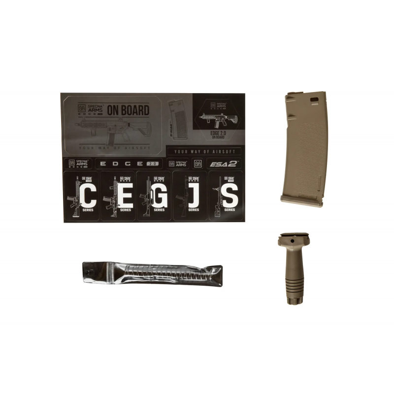 Tvoří ji AEG airsoftová puška M4A1 RIS (SA-C03 CORE™ HAL ETU™) od Specna Arms (Half-Tan) s lehkým tělem a upgrade díly.