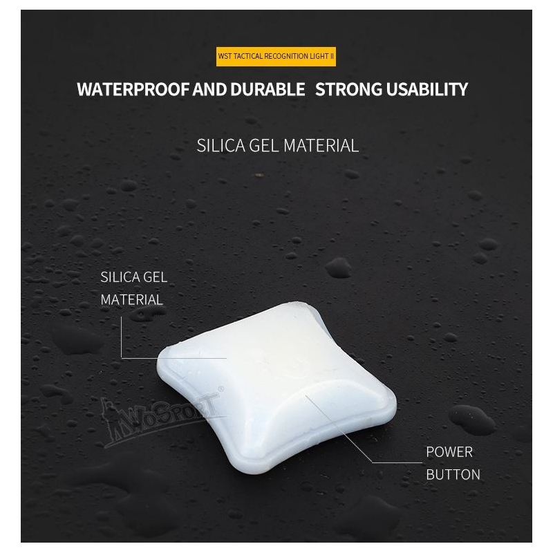 Taktické signalizační světlo II od WoSporT je vyrobeno z jednoho kusu silikonu, což zajišťuje jeho vysokou odolnost a vodotěsnost, takže ho můžete používat i v deštivém počasí, aniž byste se museli obávat jeho poškození. Funguje jako poziční beacon (maják) jednotlivce a je k dispozici v různých barvách světelného zdroje.