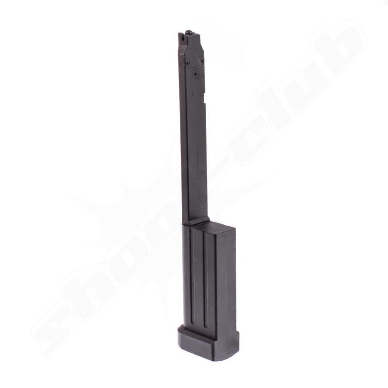 Dlouhý zásobník Tokyo Marui Hi-Capa E výrazně zvyšuje palebnou kapacitu vaší AEP pistole. Oproti standardnímu 30 rannému zásobníku se do tohoto vejde zhruba 100 BBs, což oceníte zejména při delších přestřelkách nebo CQB scénářích s pistolí. Konstrukce z odolného polymeru s kovovými částmi zajišťuje nízkou hmotnost kolem 150 g a zároveň dostatečnou pevnost pro hru. Díky štíhlému profilu se snadno zasouvá do rukojeti a zachovává dobré vyvážení zbraně. V balení najdete i adaptér pro plničku, kterým je nabíjení velmi snadné. Po zakoupení doporučujeme nejdříve nabít 20 kuliček, poté je vypustit a nabít 40 kuliček a opět vypustit, postupně přidávejte a vypouštějte zásobník po 10-20 BBs až do plné kapacity, abyste tlačnou pružiny zatížili postupně.