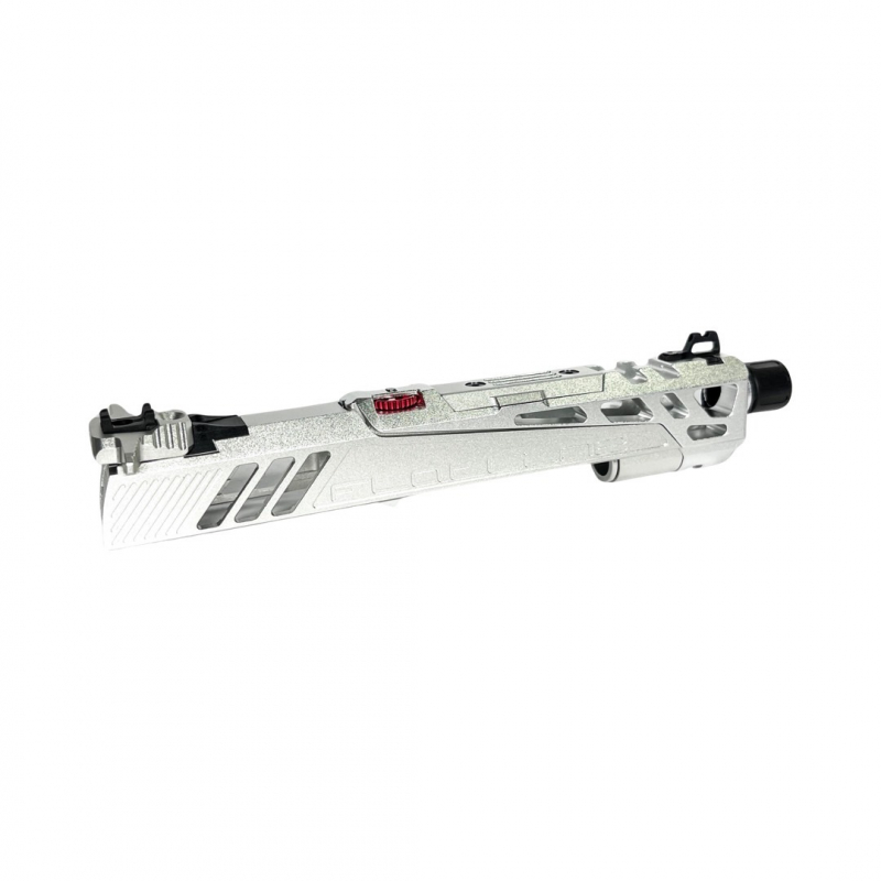 Závěr je vyroben z vysoce odolného hliníku 6061 přesným CNC obráběním a má design split-slide s úpravou pro fixní vnější hlaveň (non-recoil).
