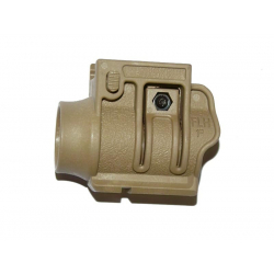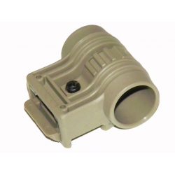 Right Side RIS Mount for Flashlights from FMA in Dark Earth. For flashlights with a diameter of 20-25 mm (M600 models, etc.). Suitable for standard 20mm RIS rail. Allows positioning of the flashlight so that no unwanted shadows from the outer barrel occur. Reinforced polymer ensures high durability.