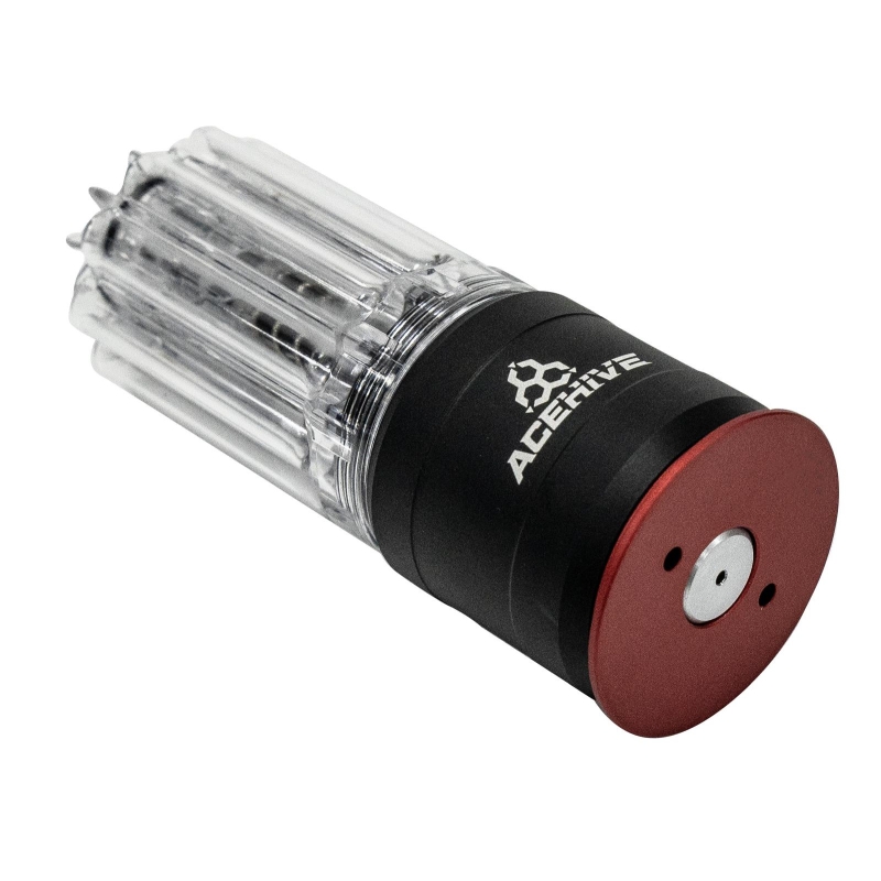 AceTech AceHive 40mm Gas Airsoft Grenade in dark transparent finish. Capacity: 80 BBs – clears a room better than Mr. Clean. Transparent design for instant load check. Ultra-fast loading in 1 second (with Spawner loader). Metal base. Universal size for most grenade launchers (M203, GP-25/30 and more).