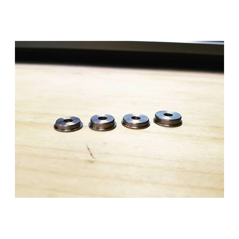 View larger CNC Bushings with diameter of 9mm (9,02mm) manufactured with precise CNC turning from high grade steel 90MnCrV8, reinforced by high heat on hardness of 58 – 60 HRC and layered for tension removing. High grade steel with excellent hardness makes these bushing for perfect use, on the strongest springs with a long lifetime. The gear axis needs to be lubed with vaseline to prevent from friction or any jamming on the gears.