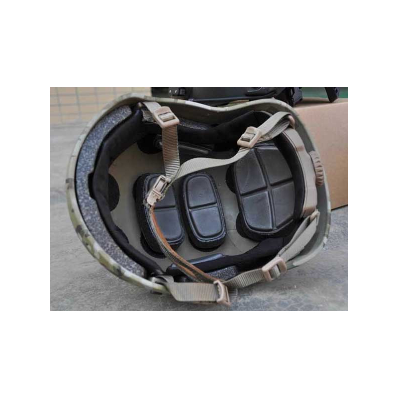 The FMA ACH Occ-Dial retention system is designed for comfort and protection. It features a shock-absorbing layer and modular breathable padding that can be adjusted or repositioned for comfort without sacrificing impact protection. The system includes a low-profile Occ-Dial adjustment wheel, enabling easy customization for optimal stability, even with night vision devices (NVG), ensuring comfort during prolonged wear. The padding is durable, breathable, easy to clean, and removable. The retention system is compatible with both ballistic and non-ballistic helmets of the FAST and MICH types.