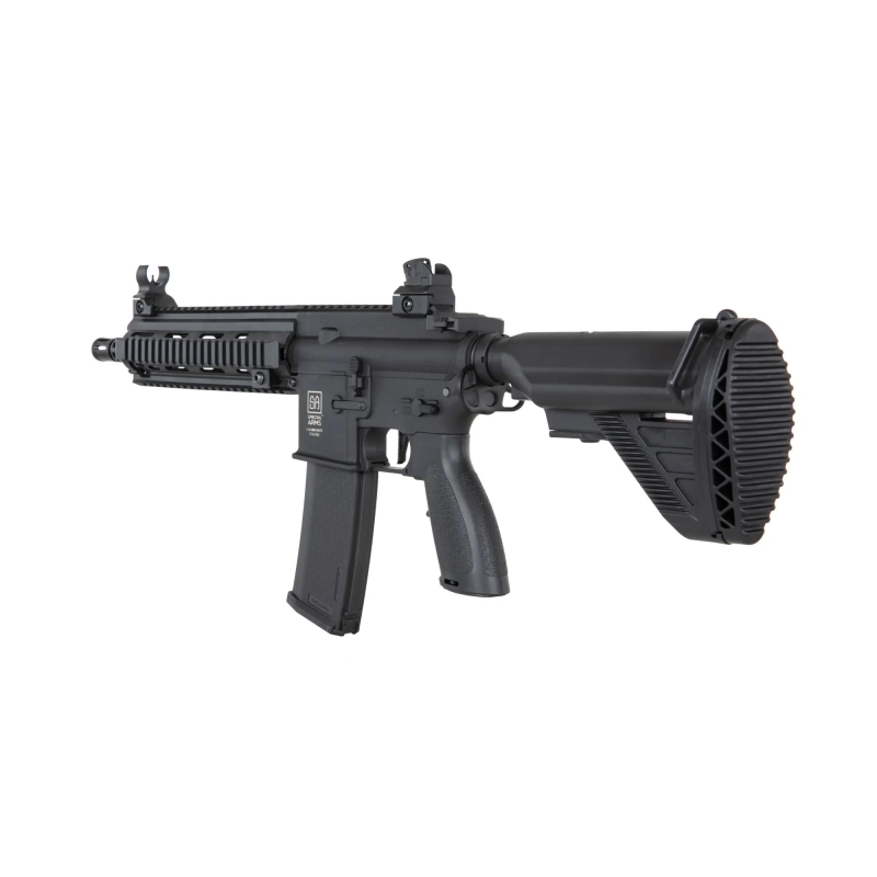 Specna Arms 416 Carbine RIS 10.5" Gen2 (SA-FH06 FLEX™ HAL ETU™) in black finish is a high-performance airsoft rifle with 120 m/s power and upgraded internals. It features a HAL ETU™ processor unit with fpre-cocking and trigger sensitivity adjustment. The nylon body and RIS handguard ensure excellent handling, while the TDC hop-up chamber with Helium™ flat bucking delivers great accuracy.