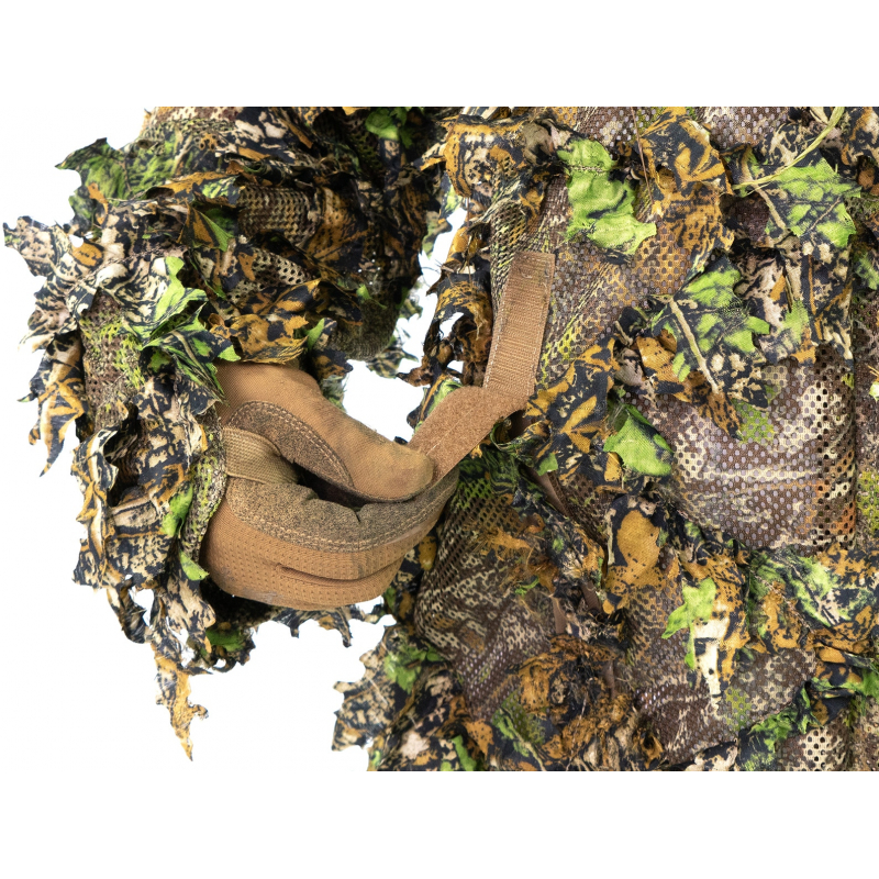 Looking for a ghillie-type camouflage jacket that truly hides you in various terrains? Need a universal fit that adapts to all body types and allows quick adjustments on the field? Want to have effective camouflage straight out of the box, ready to customize with real vegetation or artificial 3D leaves and raffia? Then the 3D GHILLIE SUIT Jacket by Novritsch is what you’re looking for. It features a universal size fit for all users, extended sleeves, and quiet snap-button closure. Snaps are also located around the collar, allowing you to attach a matching camouflage hood (sold separately). The jacket can be worn alone or as part of a full ghillie outfit (pants + jacket + hood). Attachment loops for live vegetation combined with the irregular 3D leaf pattern effectively break up your silhouette. Hidden VELCRO panels allow secure BATTLEBELT attachment. For the best camouflage results, we recommend combining it with our ANAREUS SilkLeaf or Novritsch LC System leaves, or with additional materials such as BURLAP, SCREEN CAMO, and RAFFIA.