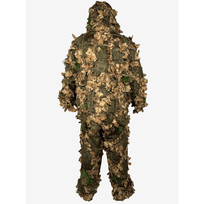The entire KMCS concealment system serves one purpose—flawless concealment. This suit features carefully selected colors that seamlessly blend with the surrounding environment. The 3D leaf configuration replicates complex forest floor patterns. An innovative elastic retention system and adjustable straps allow you to customize the suit to your exact fit. Additionally, the suit features attachment points for natural vegetation or artificial materials to further enhance its effectiveness.