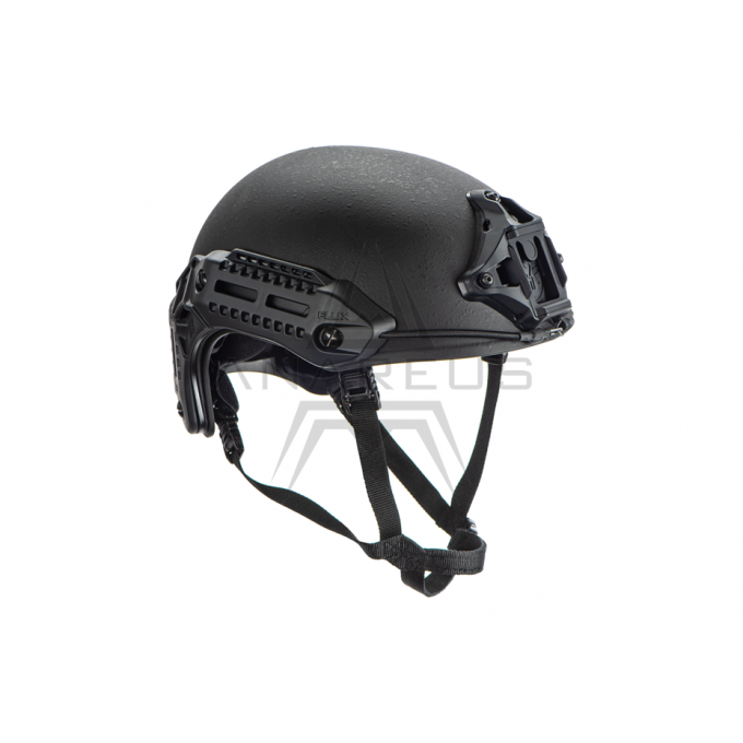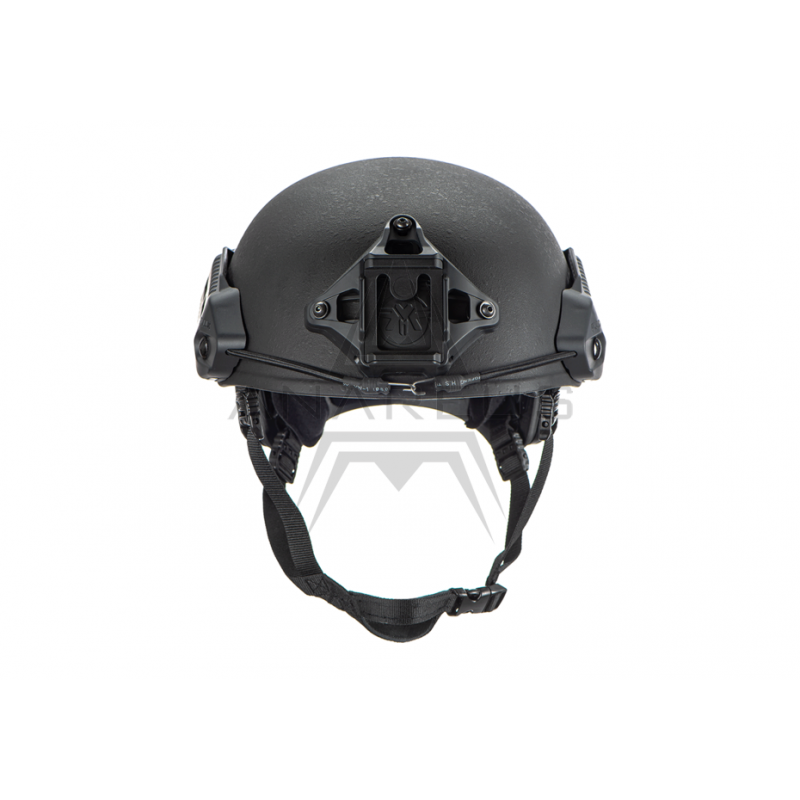 FAST PARATROOPER Helmet by MIL-FORCE in black. Lightweight training helmet with replaceable internal padding. ARC side rails and NVG mount for accessories. H-strap and OCC adjustment dial for size adjustment (53–59 cm). No protective properties – for aesthetic purposes only.